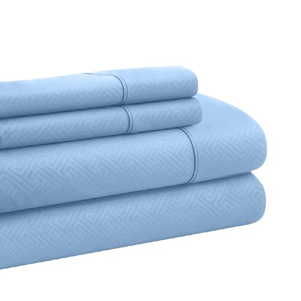 3 Piece Embossed Super Soft Fabric Microfiber Sheets Twin Xl | Beautiful Emboss Geometric Design 16" Deep Pocket Light Blue Bed Sheet Set, Durable Comfortable Warm Cozy Comfy Wrinkle Free Luxury Sheet