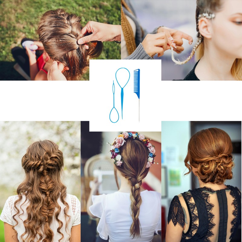 - Complete Hair Braiding Kit for All Styles.This 3-piece hair braiding set includes everything you need to create stunning braided hairstyles. Whether you're a beginner or a pro, the kit comes with a braiding hook, detangling comb, sectioning clips, and hair ties, making it perfect for French braids, Dutch braids, fishtails, and more.
