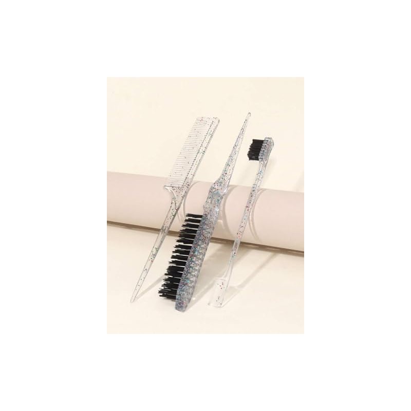 3-Piece Hair Styling Comb Set, Glitter Rat Tail Comb, Edge Control Brush, Pink/Clear (Clear)