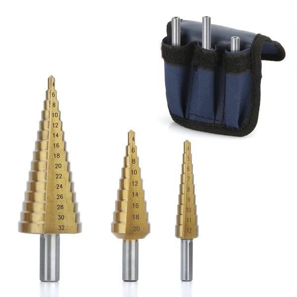 3 Piece HSS Step Drill Bit Set Hex Shank Step Drill Cone Drill Metal Drill Bit Set 4-12 mm/4-20 mm/4-32 mm