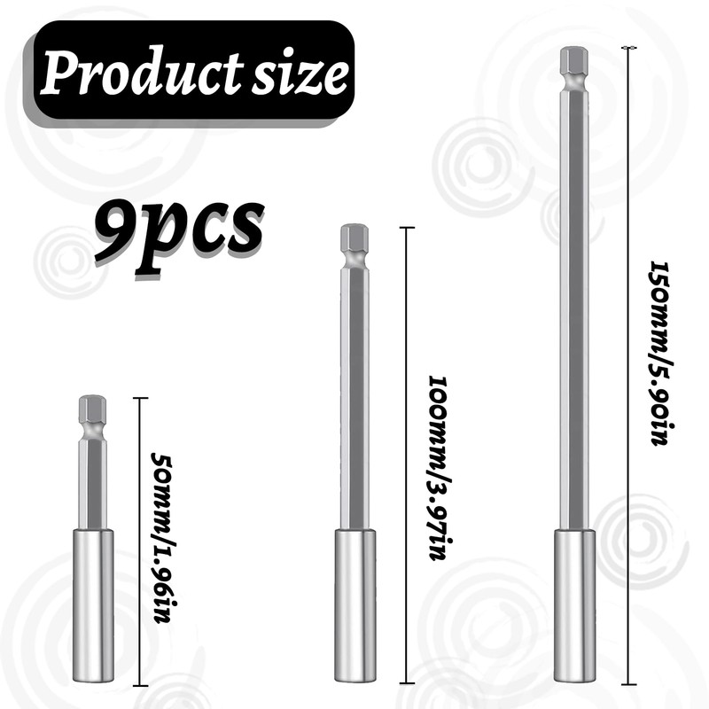 - Three sizes: Bit holder long gives three shaft extensions in different lengths. Magnetic bit extension all have a universal 1/4 inch hex socket wrench, which is suitable for most electric screwdrivers and drills and can meet your many needs.