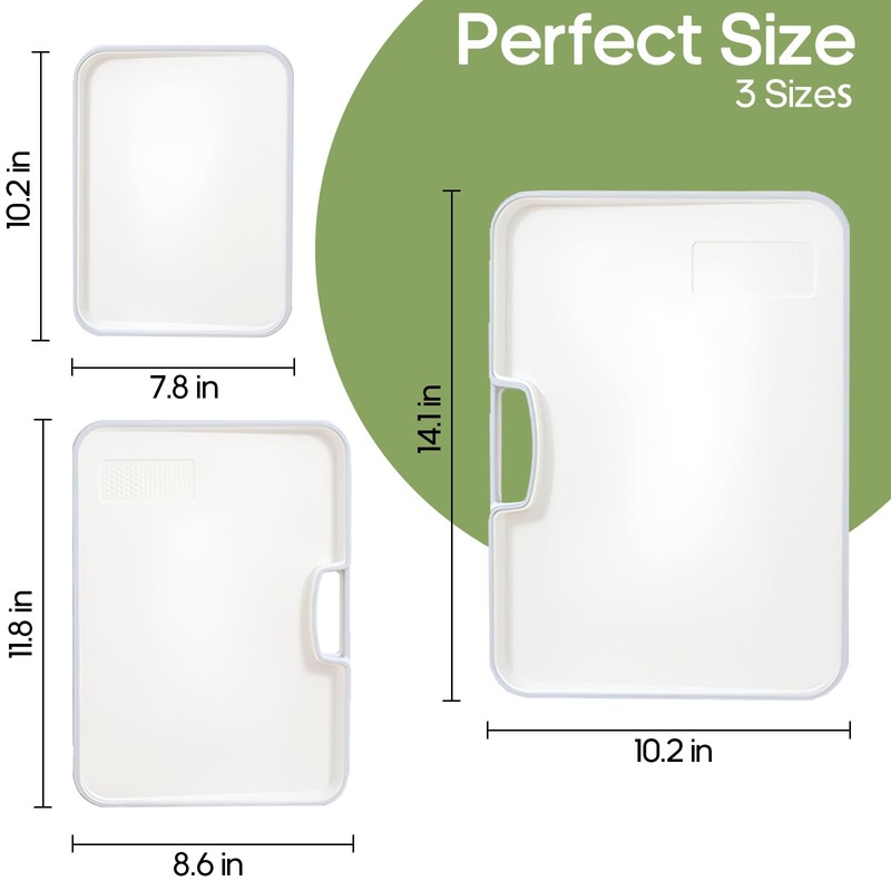 - Beveled Groove Design: The 3-piece cutting board set is designed with beveled groove, which can collect 100% of the juice produced when cutting vegetables and meat, say goodbye to the waste of juice, avoid liquid overflow to the countertop, and keep the kitchen clean