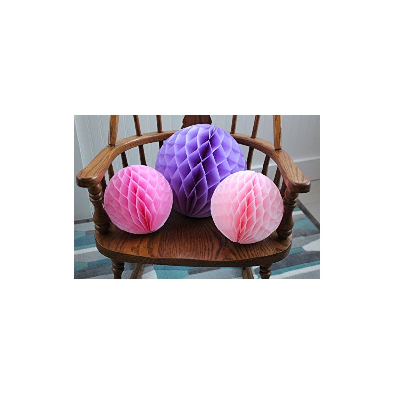 - Each pack contains one large 12 inch lavender honeycomb ball, one 8 inch light pink honeycomb ball, and one 8 inch dusty rose honeycomb ball