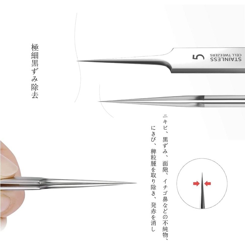 【Ultra Fine Tip】Precision tweezers exceed the smallest of the industry, and the tip is 0.1mm wide. This is 0.5 times the diameter of the hair. High precision, ultra-precision tweezers It helps remove impurities such as acne, blackheads, strawberry nose, acne and cranoma, and helps to eliminate redness and maintain a clean and smooth face.