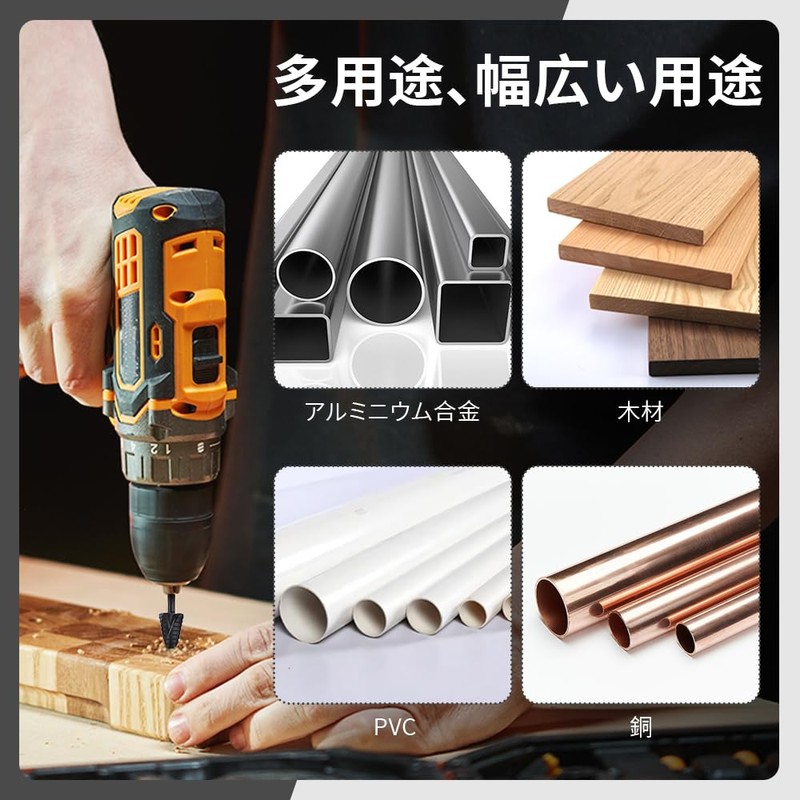 - [Range of application] The spiral shape is ideal for stainless steel and has less welding and smooth drilling. Perfect for drilling and DIY projects, enlarging the hole and chamfering the bottom of the hole and deburring from stainless steel, thin iron plates, aluminum plates, wood, vinyl, resin, etc