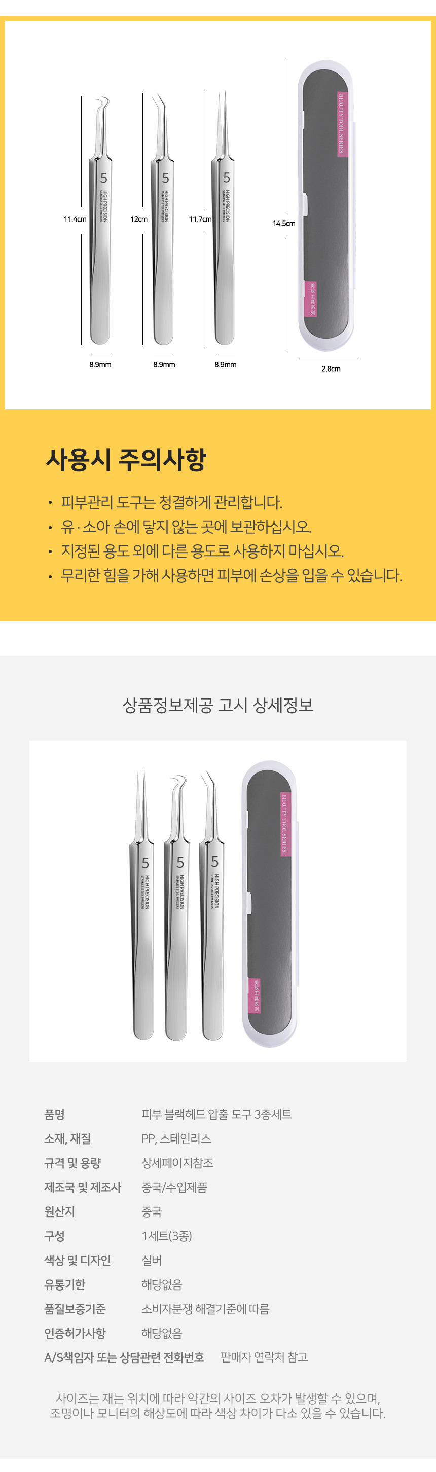 3-piece skin blackhead extrusion tool set / 피부 블랙 헤드 압출 도구 3종 세트