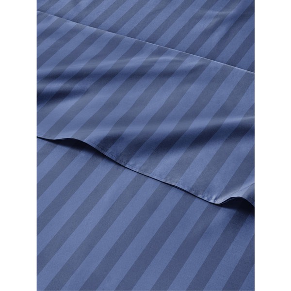 3 Piece Striped Sheets for Twin Size Bed – Luxury Flat Sheet 66 x 96, Fitted Sheet 39 x 75 and 1 Pillowcase 20 x 30 – Deep Pocket, Soft, Blue Stripe Bed Sheets – Oeko-TEX Stripe Sheet Set