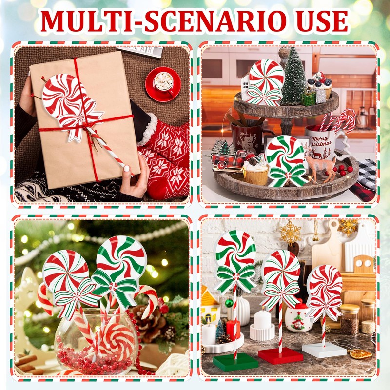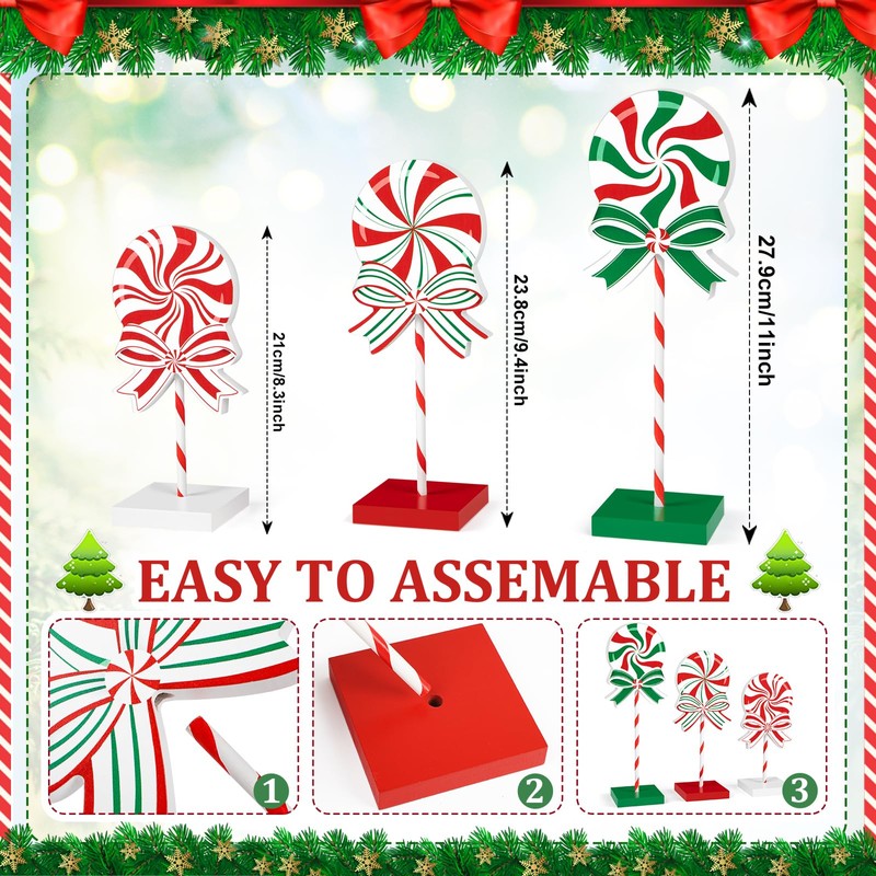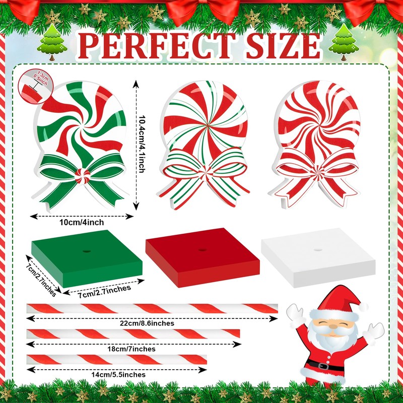 - Detailed dimensions: These candy sets stand at 8.3/9.4/11 inches, the candy measures 12.5 cm/4.9 inches, the square base is 6 cm/2.4 inches, and the candy is 0.5 inches thick. Enough to meet your Christmas decoration needs.