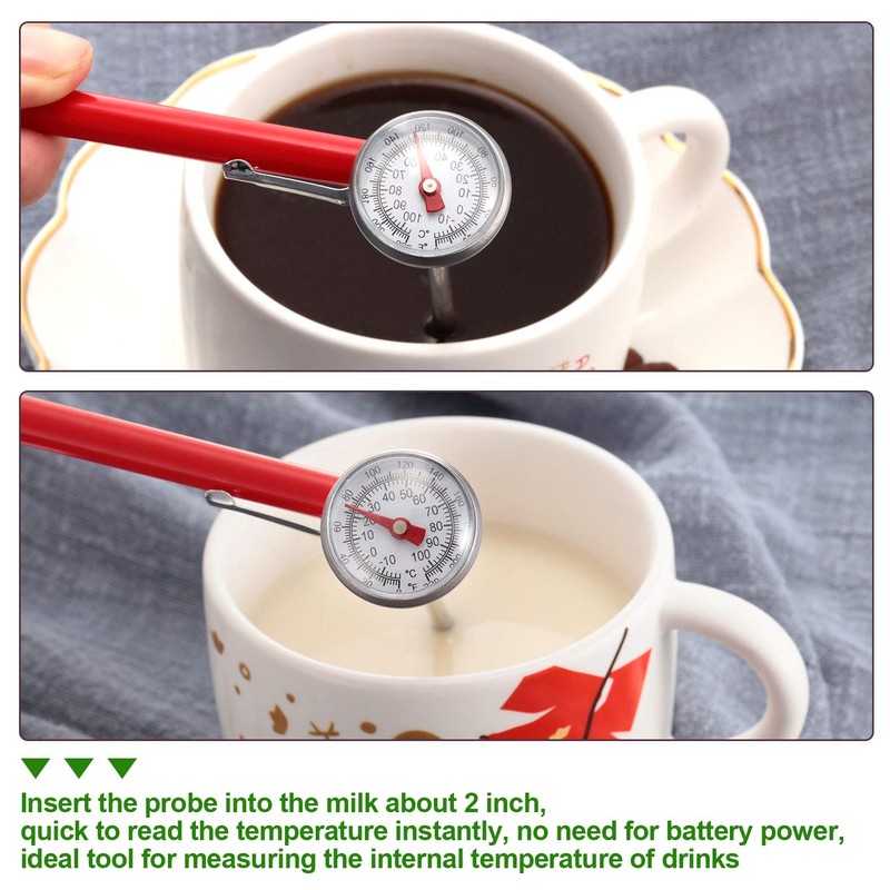 - Applicable ways: with a wide temperature measurement range, these drink dial thermometer with calibration sleeve an be applied for measuring the temperature of milk, coffee, tea, cold drinks, beverages, and red wine, water, refrigerator temperature and more, take the probe as coffee pull pin if you want