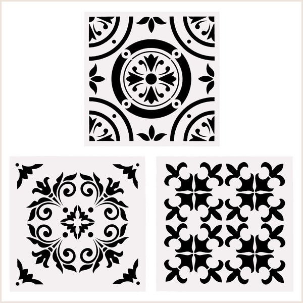 **Mandala Painting Drawing Reusable Stencils Set of 3 (12 x 12 inch) Laser Cut Painting Template** Size: 12 × 12inch ; Thickness: 0.25mm/ 10mil Package Quantity: 3 × Mandala Reusable Stencil \- Mandalas are hot item in the world of art and decor, and you have them here on one stencil. \- Stencils for use in home decorating, furniture refurbishing, and mixed- media art and other creation. **Extensive application:** You can apply these large size reusable stencils to acrylic paints, white acrylic craft paint, chalk paint, sponge brush tapping, spray paint, small brush painting and so on. **Workmanship and durability:** The wall stencils are made from PET plastic which is sturdy enough with reliable and delicate patterns for tracing with pen or pencil and easy to wipe clean after use. **How to use:** 1\. Clean the surface to which you want to apply your stencil. 2\. Position the stencil so that the shape is exactly where you want it, and if needed you can secure with some tape. 3\. Mask the outside of the stencil if you don't want to get any paint outside of your intended area! 4\. Now it's time to apply the paint. 5\. Gently lift the stencil straight up off your surface. **Application:** \- Used this with fabric spray on your curtains for a Moroccan look. \- Used on a redone cabinet you did for your daughter. \- Used for stenciling on chalk painted furniture. \- Used them to create art on canvas for your bedroom which has sort of an India theme. Bring a Different Experience: Creating beautiful by hand, feeling with your heart, decorating your life with Mandalas Stencils!