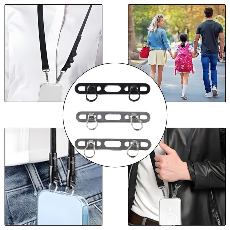 - Diverse Choices: The package contains 3 double buckle hole ring cell phone lanyard patchs of different colors, namely black, primary color and silver. Whether you pursue simplicity and low-key or prefer bright and eye-catching, metal phone tether tab can help you easily achieve the ideal styling effect.