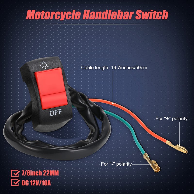 - Package includes: you will receive 3 pieces of 7/8 inch/ 22 mm motorcycle handlebar switch, the color is red, DC12V/ 10A, the cable measures approx. 50 cm in length, the quantity is enough to meet the needs of you and your family members to replace the motorcycle handlebar switch
