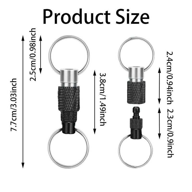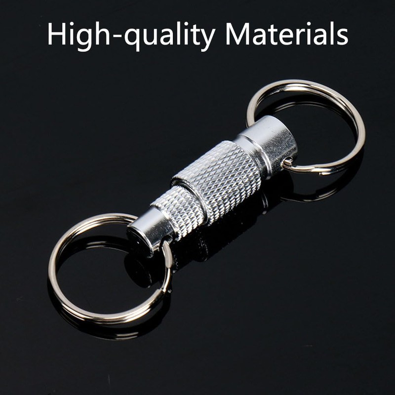 1. The quick release key ring is easy and convenient to use. Simply squeeze the plunger together and release the other end. The spring-loaded ball bearing clutch mechanism protects it and prevents accidental release without allowing you to easily access your keys to lose them.