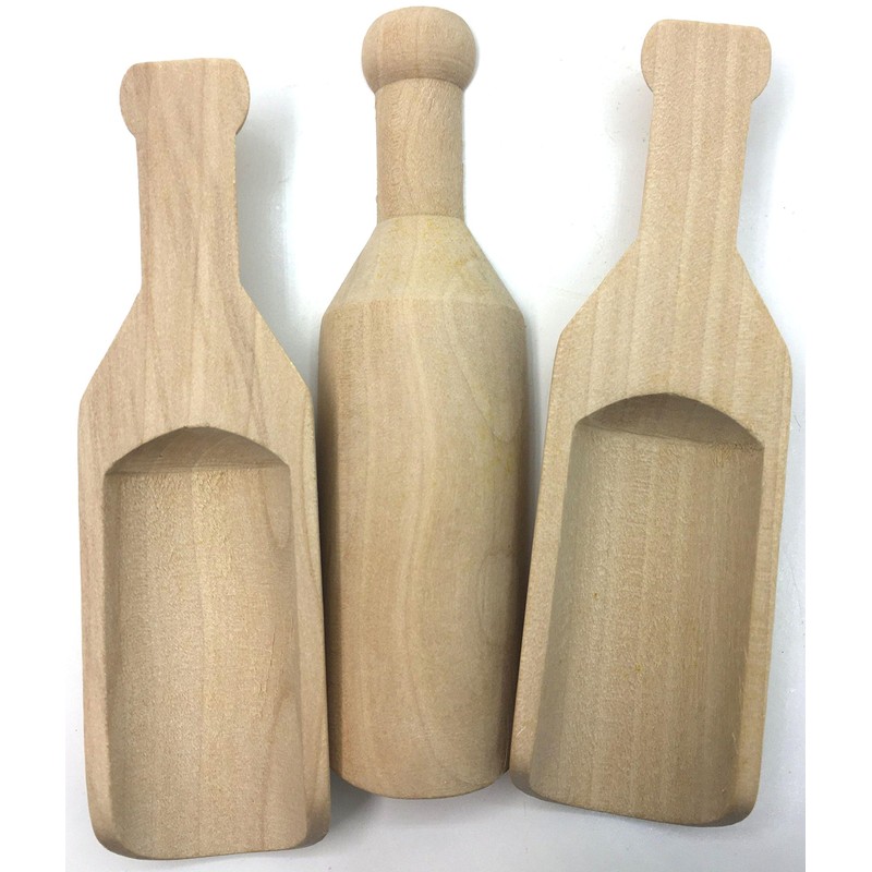 Basswood half wood scoop, slim and long it holds about 2 TSP of bath salt or bath powder. 3 pieces set.