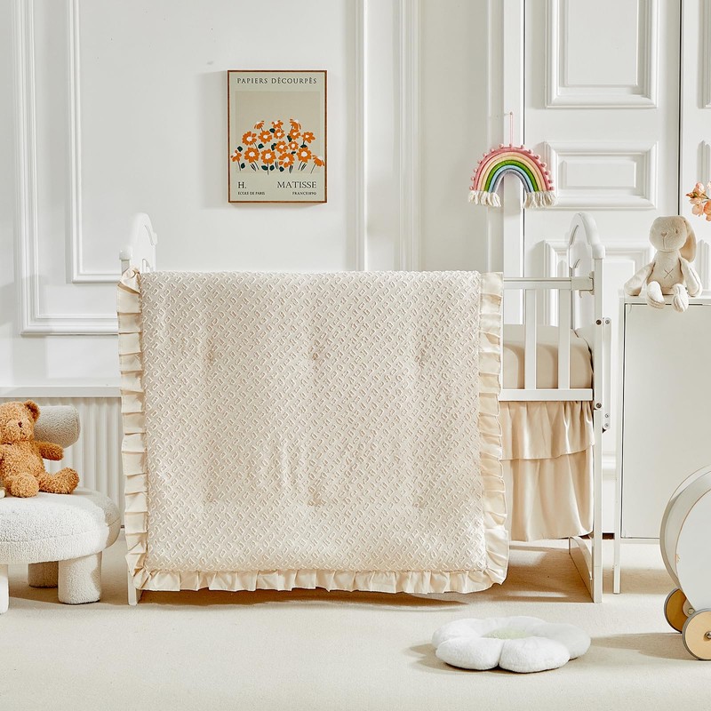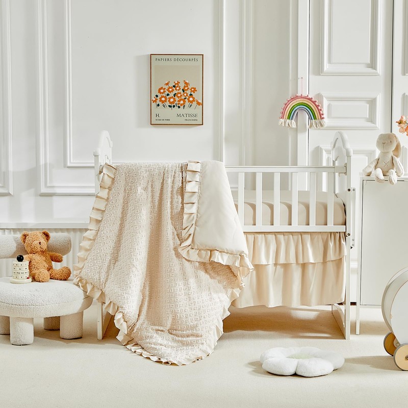 - Unique Design: Simple and sophisticated jacquard tufted embroidery design brings the visual enjoyment of beauty. The comforter not only has decorative tufts, but also has a ruffled fringe design on the edge, which will make the baby's room more unique and beautiful. The minimalist solid colored Bohemian style is perfect for baby boys and girls.