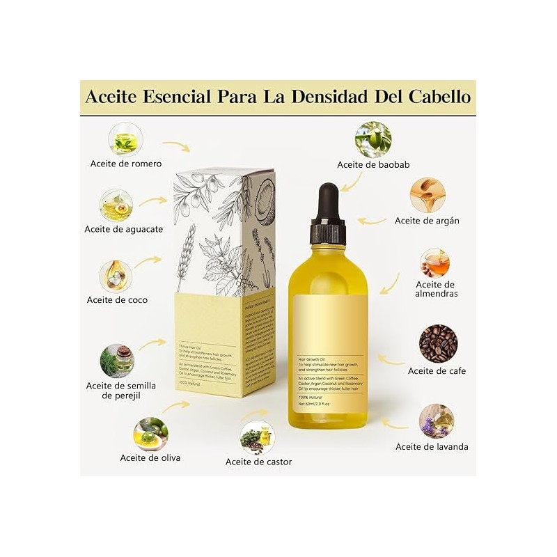 - 【Aceite natural para el crecimiento del cabello】: este tratamiento intensivo protege y nutre el cabello, reduciendo su caída y rotura.