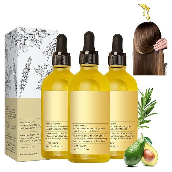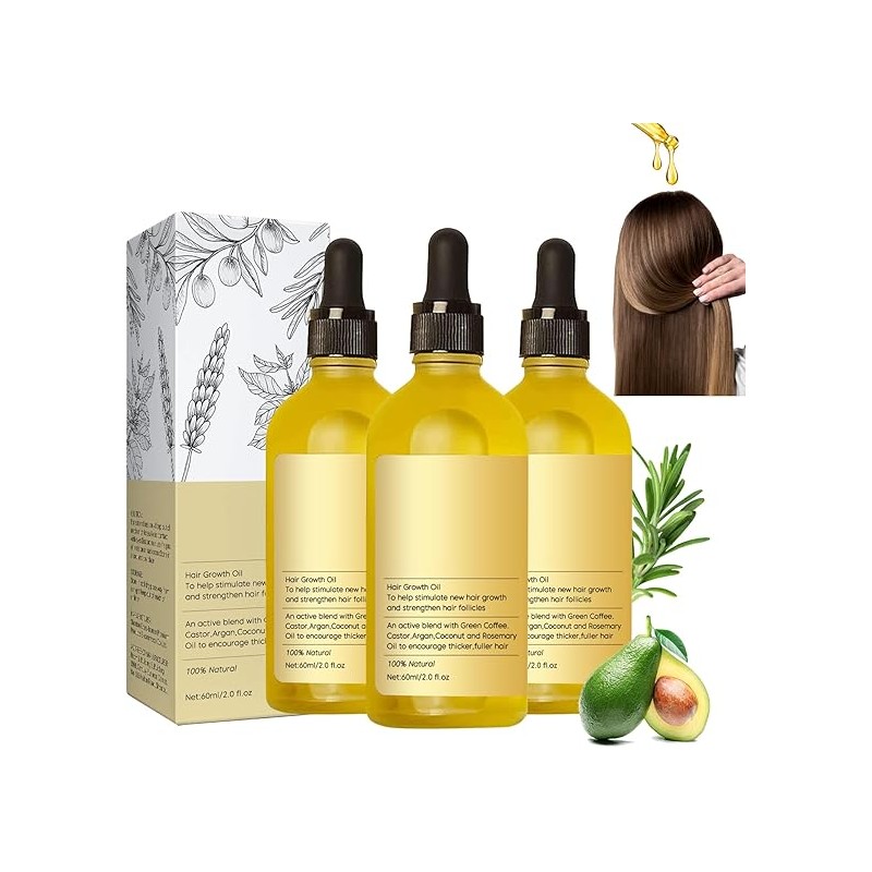 3 Piezas Aceite Natural Para el Crecimiento del Cabello, Aceite Natural para El Crecimiento Del Cabello, Aceite Orgánico De Romero Para el Crecimiento Del Cabello, Adecuado para el Cabello, Reducir la caída del cabello y proteger la salud del cuero cabelludo