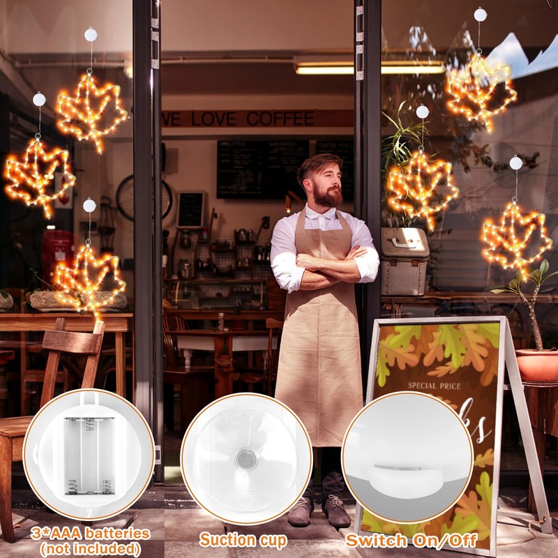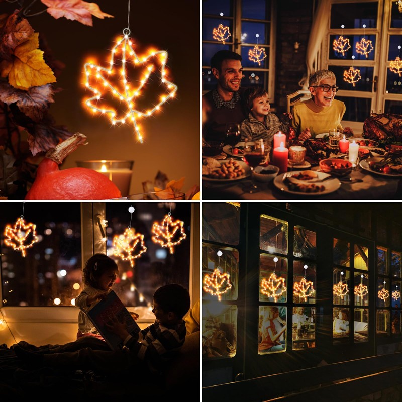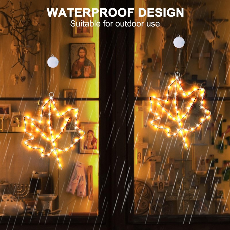 • Cuélgala en cualquier lugar】Cada luz de otoño viene con una ventosa. No se necesitan herramientas. Simplemente instálalos en vidrio, puertas, armarios, etc. Limpia la ventana u otra superficie lisa antes de la instalación para colgarla firmemente. Incluye 3 ganchos adhesivos transparentes para evitar caídas con una fuerte ocultación
