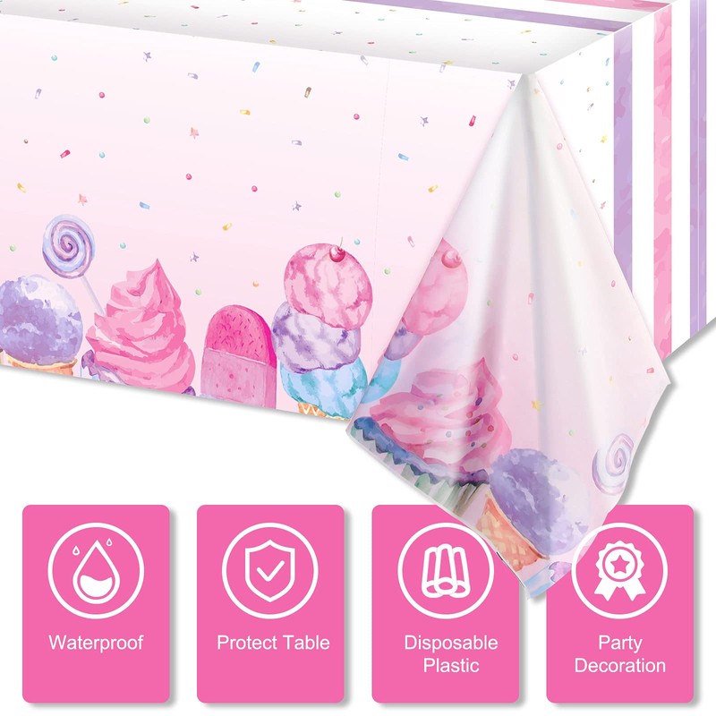 - Amplia aplicación: los manteles de helado son adecuados para la decoración de mesa de fiesta de verano, fiesta de baby girl, fiesta de cumpleaños, fiesta social de crema, suministros de fiesta temática de helados, cubierta de mesa de plástico para hacer que tu fiesta sea elegante y atractiva, y también todos los que asistan quedarán impresionados
