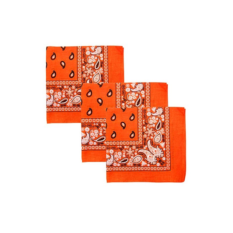 3 PK Cowboy Bandanas 100% Cotton 22 x 22 inch - Orange