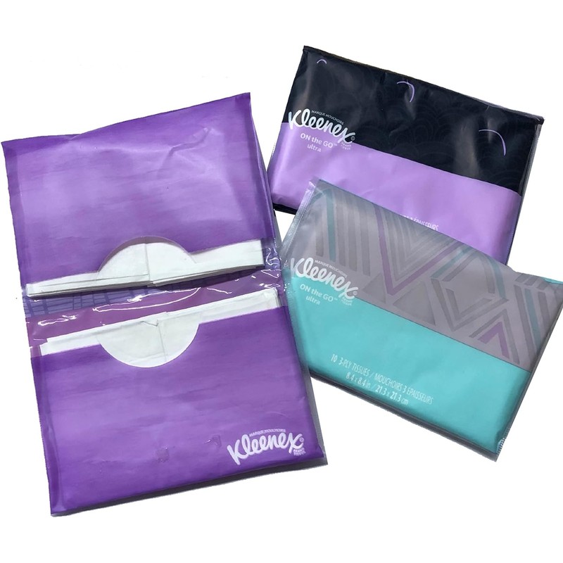 Tote your tissues in style, with attractively patterned wallet packs. Soft and strong tissues bring three-ply protection to battle runny noses. A unique sneeze shield provides additional tissue strength. Slim wallet packs fit easily in purses, cars, backpacks, etc.
