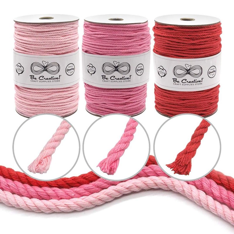 3-ply Cotton Macrame Rope 4mm 492ft (150m) - Macrame Cord - Macrame Supplies - Decorative Knot Work - Weaving - Felting Supplies Store (Rose)