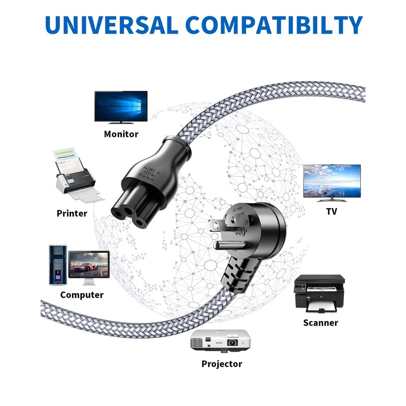 3:Universal Compatibility: AC power cable is compatible for most models of a desktop computer, speakers, printer,HDTV, monitor, projector and other 3-pin power devices. It's universally compatible and works with devices with 3-pin shroud power connectors.