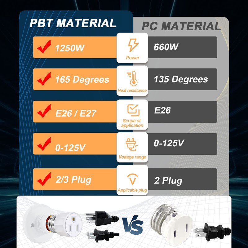 - 【Rating 1250W Max Wattage】 Made of fire-proof material PBT, which makes it high temperature-resistant, equipped with a 7-point safety system featuring fire resistance, circuit-overload protection, short-circuit protection, and more to keep you and your devices safe. Please do not exceed the electrical rating of 125VAC and 1250W. Rated for indoor use only and not in wet locations.