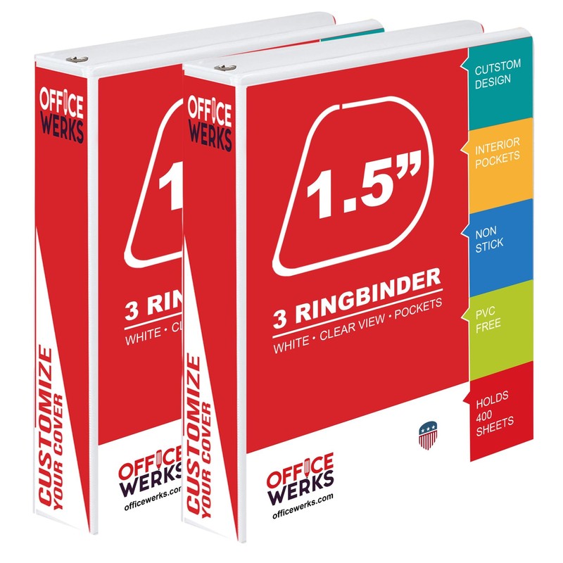 3 Ring Binders, 1.5 Inch Slant D-Rings, White, Clear View, Pockets 2Pack