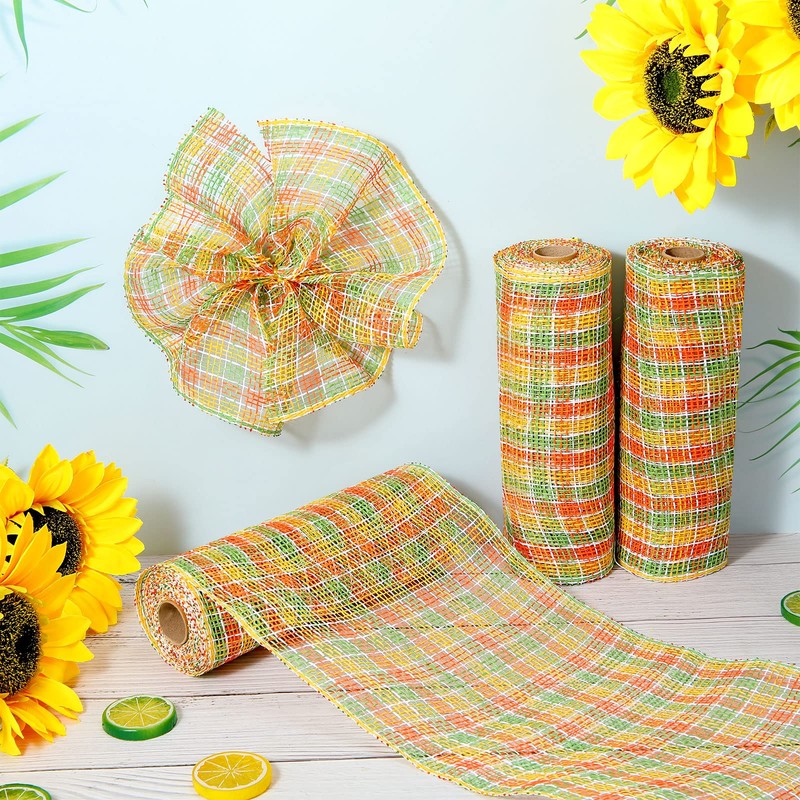 3 Rolls Fall Poly Burlap Mesh 10 Inches Plaid Check Deco Mesh Wreath Supplies...