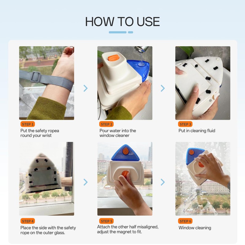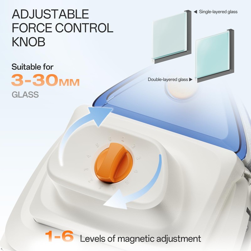 - Strong Magnetic Grip with Adjustable Settings: Built-in powerful magnets and six adjustable magnetic strength settings let you customize the cleaner to work on a variety of glass thicknesses—single, double, or triple layers. This ensures a secure grip and a stable cleaning experience every time. Rest easy knowing the cleaner stays in place, making it ideal for complex glass cleaning tasks.