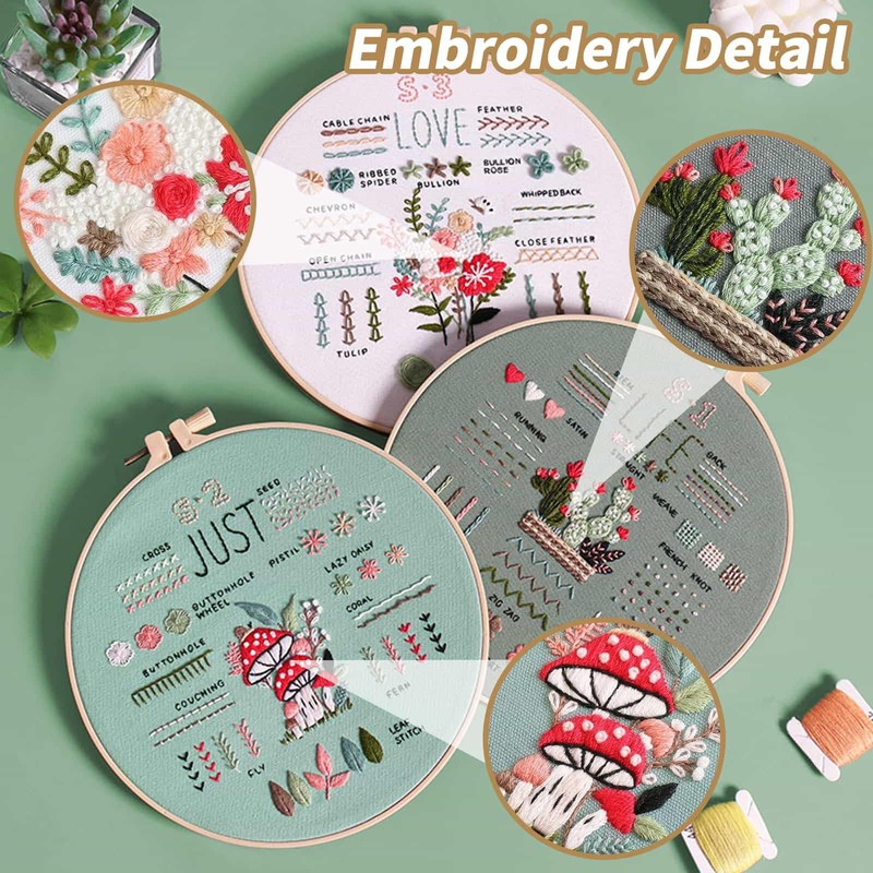 3 Sets Embroidery Kit for Beginners Embroidery Stitch Practice Kit for Beginners Adults, Stitch Practice Kit, Includes Cloth with Pattern, Hoop, Colorful Threads and Tools