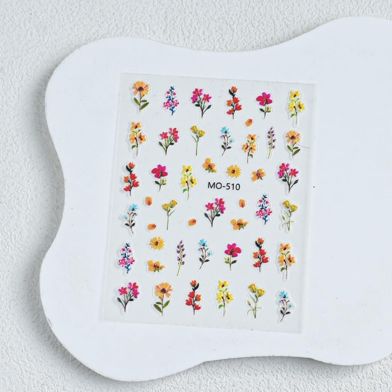 3 Sheet Flower Nail Stickers for Nail Art Decals YEFIUO Self-Adhesive Nail Art Stickers Charms Sliders 5D Relief Fall Wildflowers Design Manicure DIY Supplies Stuff Accessories for Women and Girls