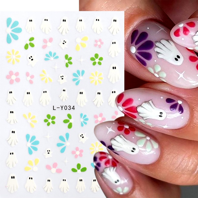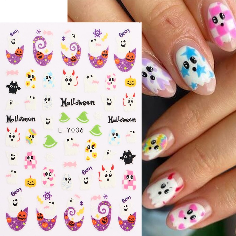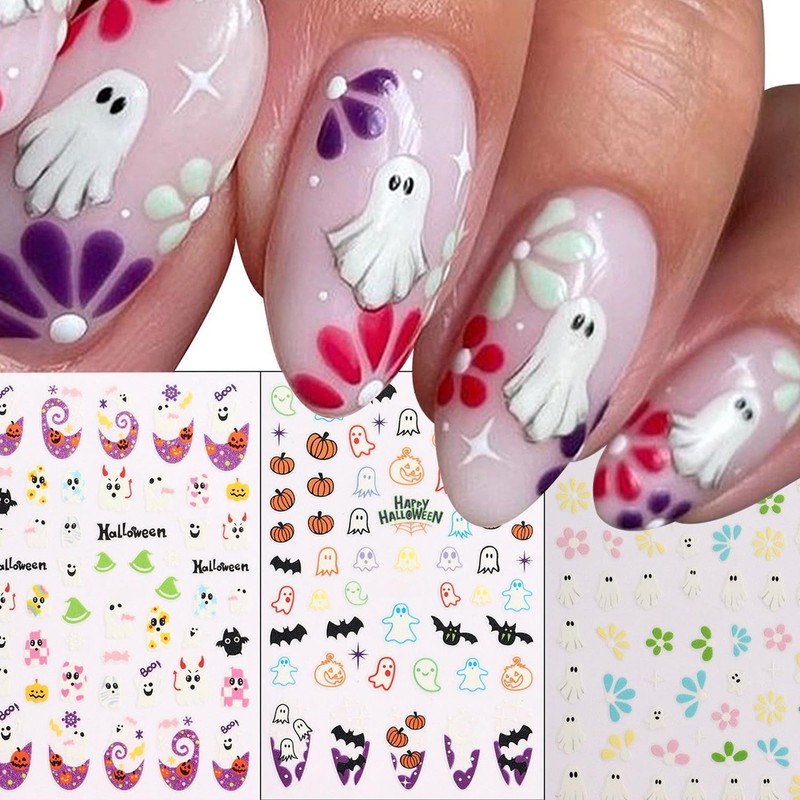 3 sheets nail stickers halloween self-adhesive ghost stickers cute design nail art decals