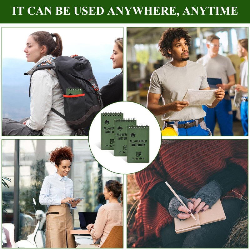 - 【Wasserdichtes Design für Jedes Wetter】: 3er-Pack Notizbücher aus grünem Steinpapier, 100 Seiten/50 Blatt pro wasserdichtem Notizblock für Ihren Bedarf. Wasserdichte Notizblöcke sind so konzipiert, dass sie Wasser, Schweiß, Fett und sogar Wäschepannen standhalten und sicherstellen, dass Ihre Notizen bei jedem Wetter lesbar bleiben.