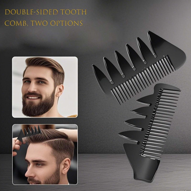 1. Full-Flow-Vintage-Styling-Lösung: Der häufig verwendete doppelseitige schmale und breite Zahnkamm (Rückenbürste) formt das Haar präzise und der doppelköpfige Kamm reduziert Zugschäden. Gepaart mit Haaröl oder Wachs ermöglichen sie Vintage-Styles in Salon-Qualität in wenigen Minuten.