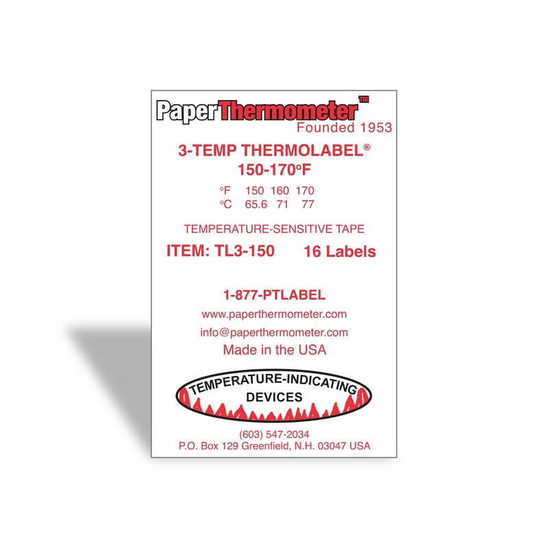 3-Temp Thermolabel 150°F 160°F 170°F Temperature Label for Dishwashers Pack of 16 Labels