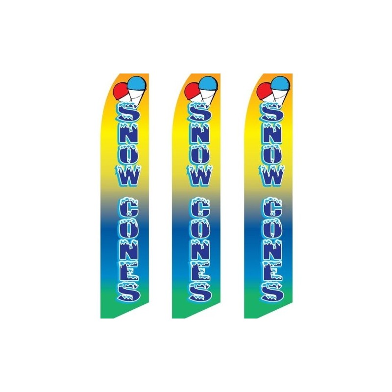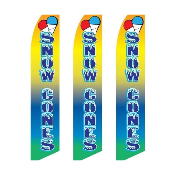 3 (three) Pack Tall Swooper Flags Snow Cones Shaved Ice Multi Color