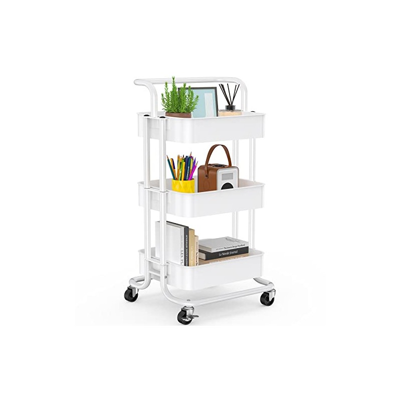 - Easy & Convenient to Move: This 3-Tier storage cart comes equipped with 4 wheels (2 lockable) and the handle design makes it easy & convenient to roll around to anywhere you need, or lock it in place.