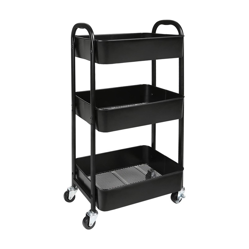 3-Tier Rolling Utility Cart with Caster Wheels,Easy Assembly, for Kitchen, Bathroom (Black)