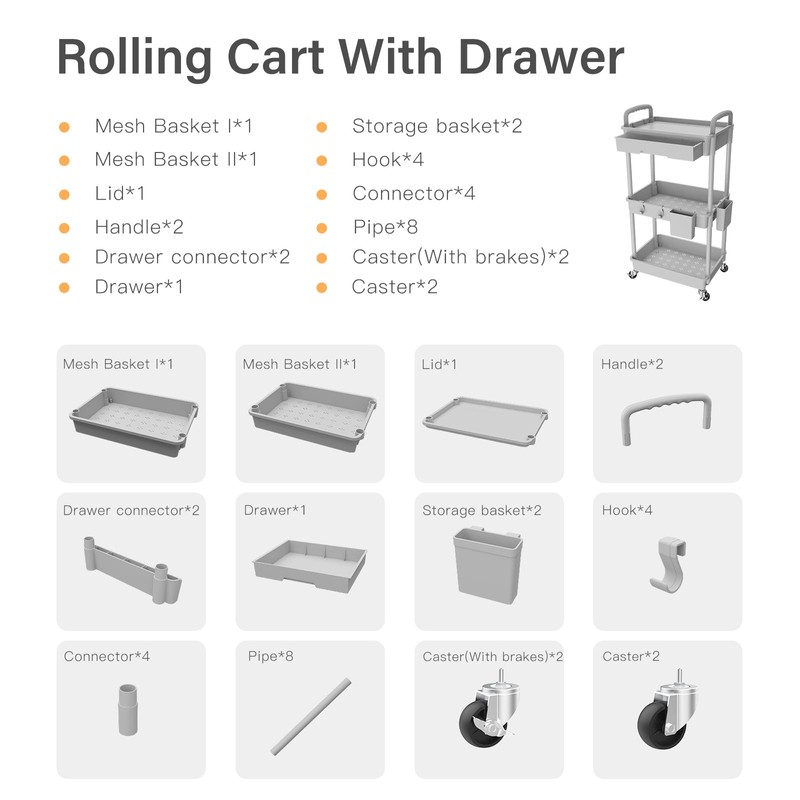 • Rolling tray Easy to Assemble: Shopping cart with wheels,which is quick and easy to assemble.REBECAT storage cart with clear instruction manuals that make it a breeze for anyone to put together.