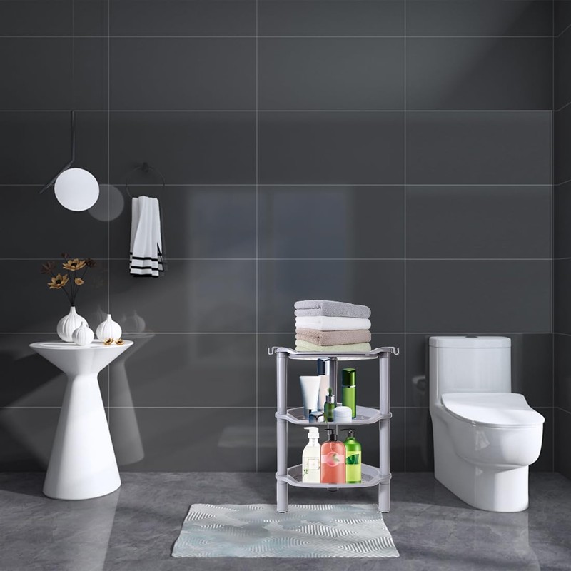 - High-quality Plastic: The corner shelf is made of very sturdy and great quality plastic, rustproof and waterproof, It has flat surfaces to prevent items from slipping from the shelf while the shelves also protect bottles from falling in bath or floor
