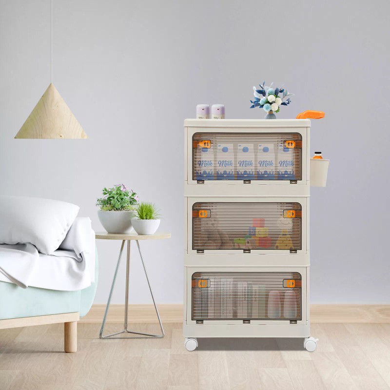 3 Tiers Foldable Storage Cabinet Movable Storage Box Collapsible Storage Bins US