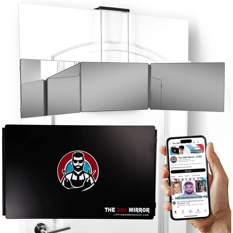 Three-Way Mirror System - With its lightweight, versatile three-way mirror that allows full visibility of each inch of the head, this system ensures precise hair cutting every time. The user-friendly educational app provides clear instructions on how to perform haircuts as if they were taught by a professional. Achieving the perfect cut with every cut is the ultimate goal of this product.