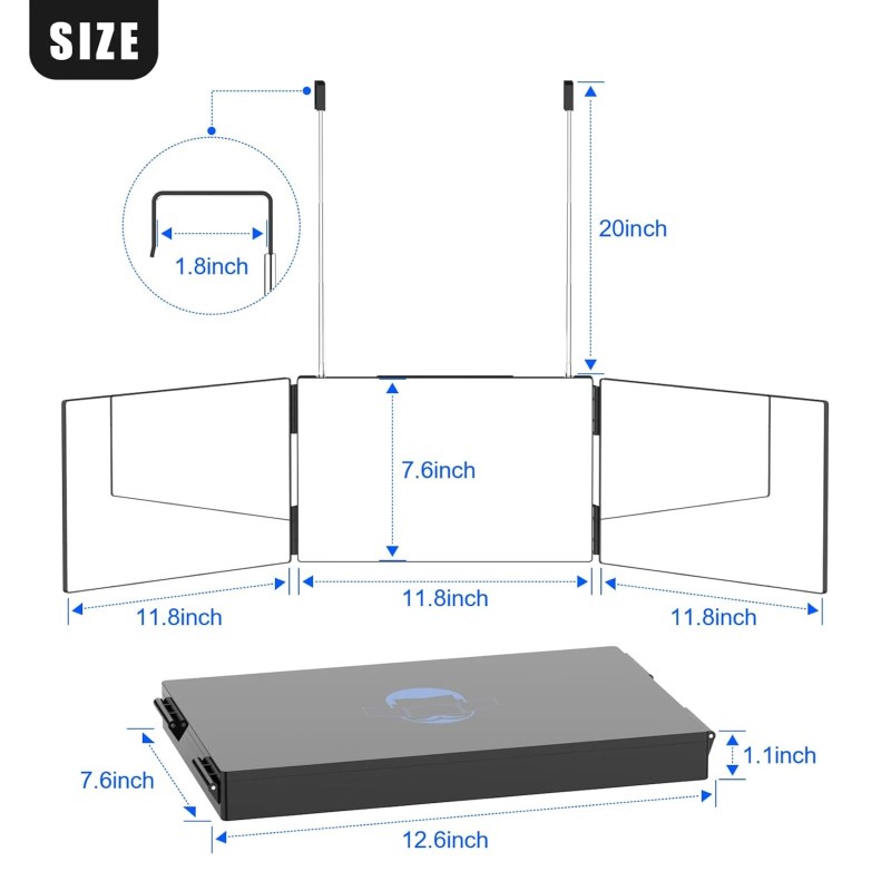 3 Way Mirror with LED for Hair Cutting Tri-fold for Shaver and Makeup Black