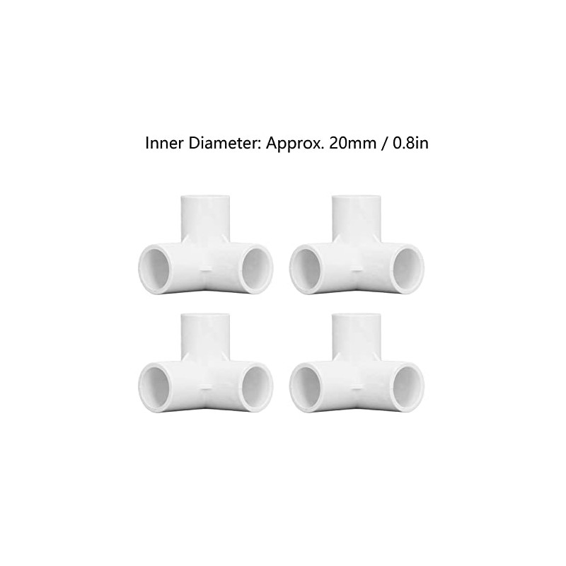 3 Way Pipe Fittings, 10PCS 3 Way Pipe Fittings Pipe Connectors PVC Plastic Right Angle Tee Corner Connector Corner Fitting, 20mm Inner (White)