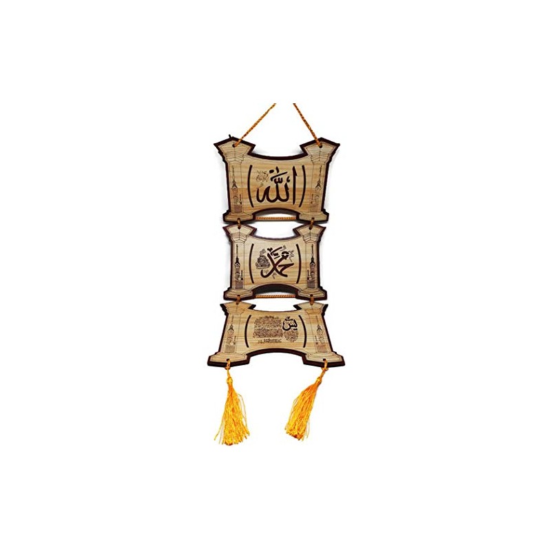 3 Wooden Plate Display w/Hanging Rope AMN120 Islamic House Wall Door Decorative Ornament Engraved Wood Arabic Calligraphy Allah Muhammad Names w/Surah Yasin Beginning Muslim Gift