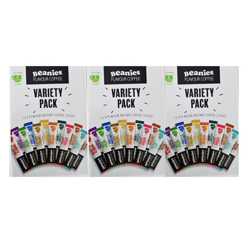 3 x 12 Flavoured Coffee sachets/ sticks - variety pack - Beanies