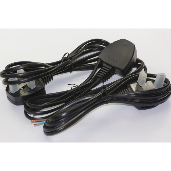 3 x 2m Mains Flex, Moulded UK Plug, Open End 0.75mm, 2 core 5A Appliance Cable