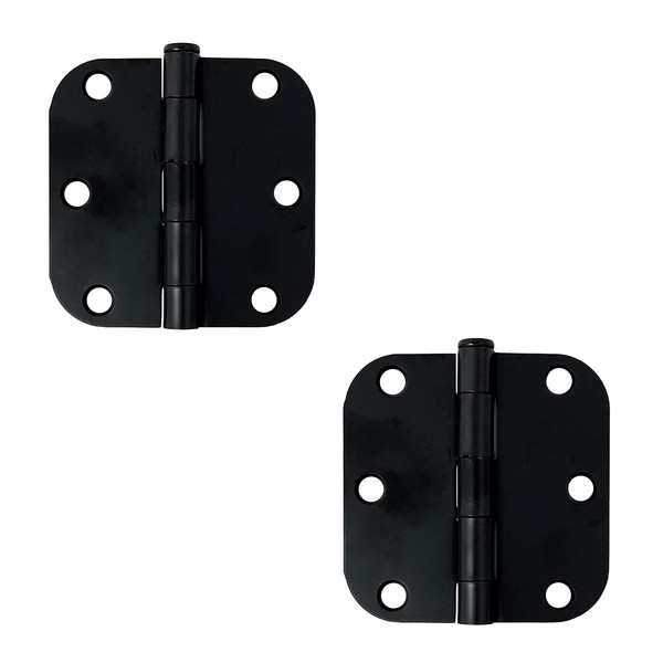 3’’ X 3’’ Door Hingers, Pack of 2, Interior Door Hinges Modern Hardware for Interior Doors (Matte Black, Round & Round)